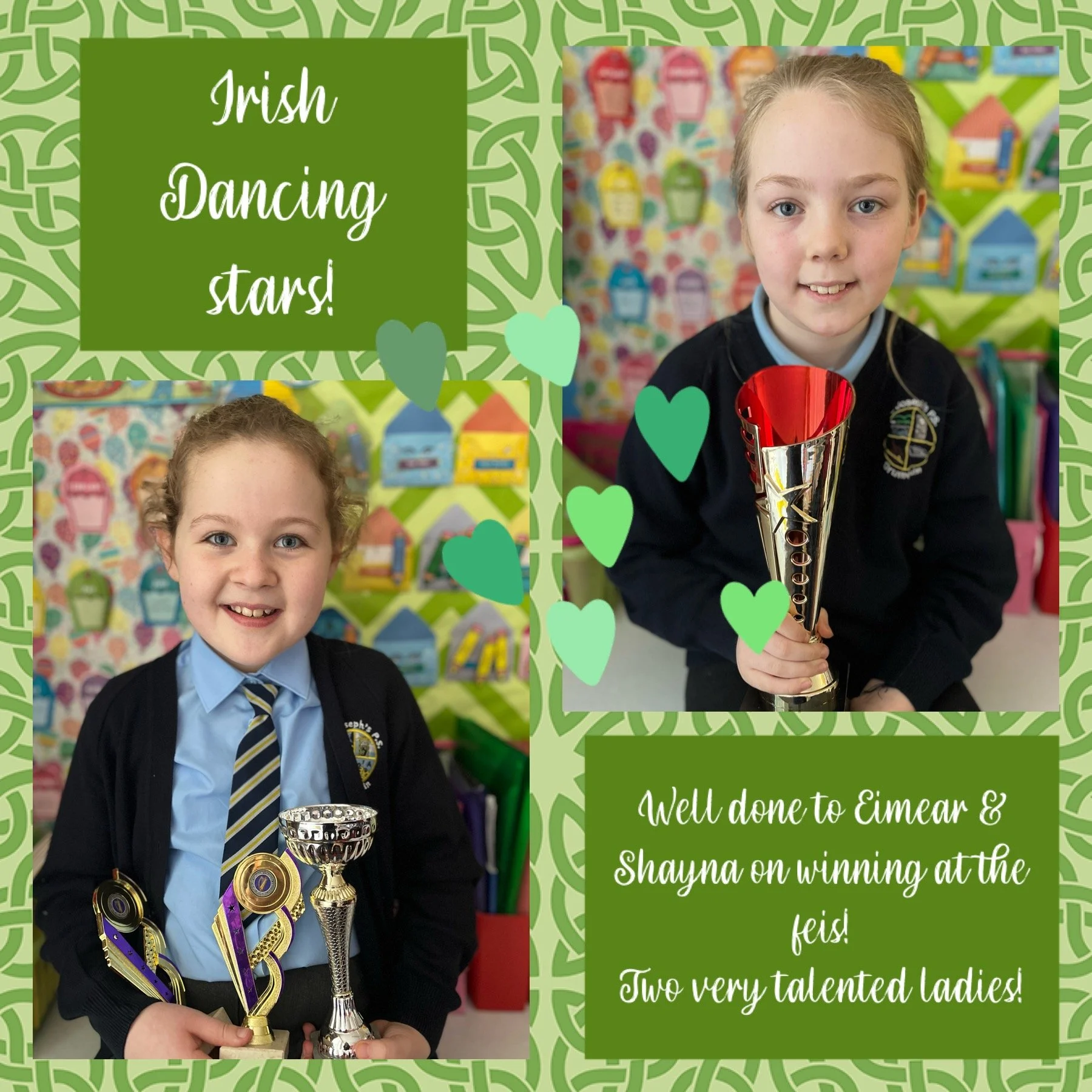 Eimear won a cup and several medals at the O’Kane School of Dancing Class Feis on Saturday! Fantastic Eimear!